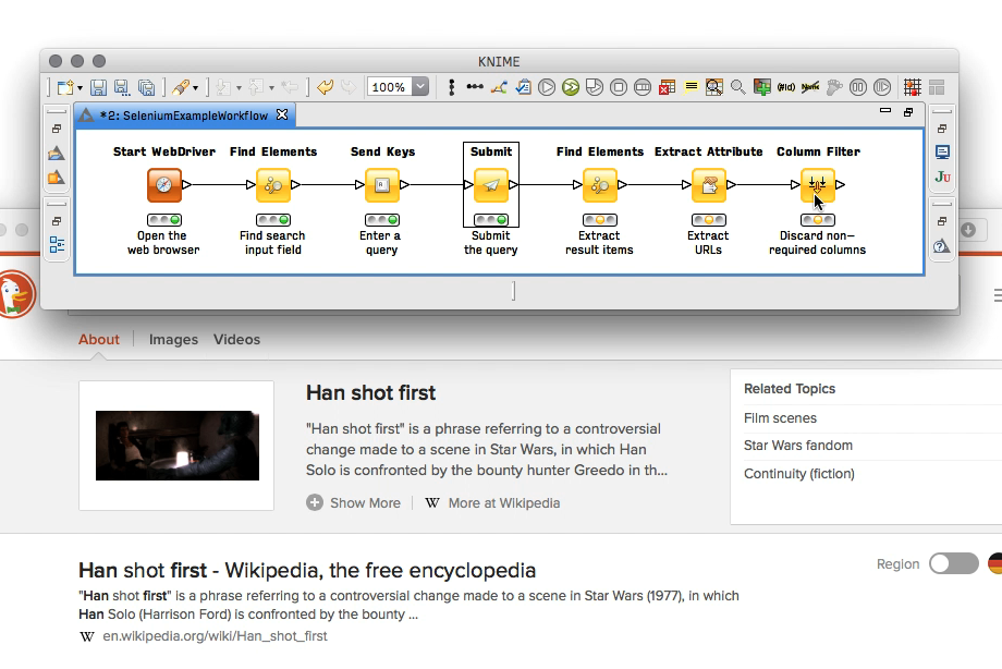 Web scraping — GET or POST? Cookies, headers, authentication? Web crawling and data extraction is a pain, especially on JavaScript-based sites. With the Selenium Nodes you have the power of a full-blown browser combined with KNIME’s processing and data mining capabilities.
